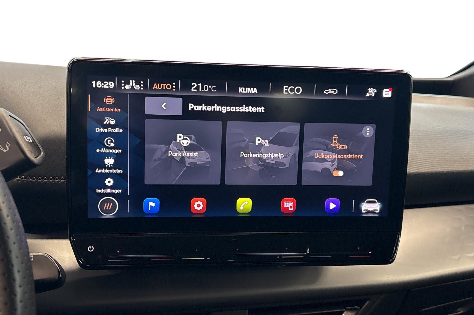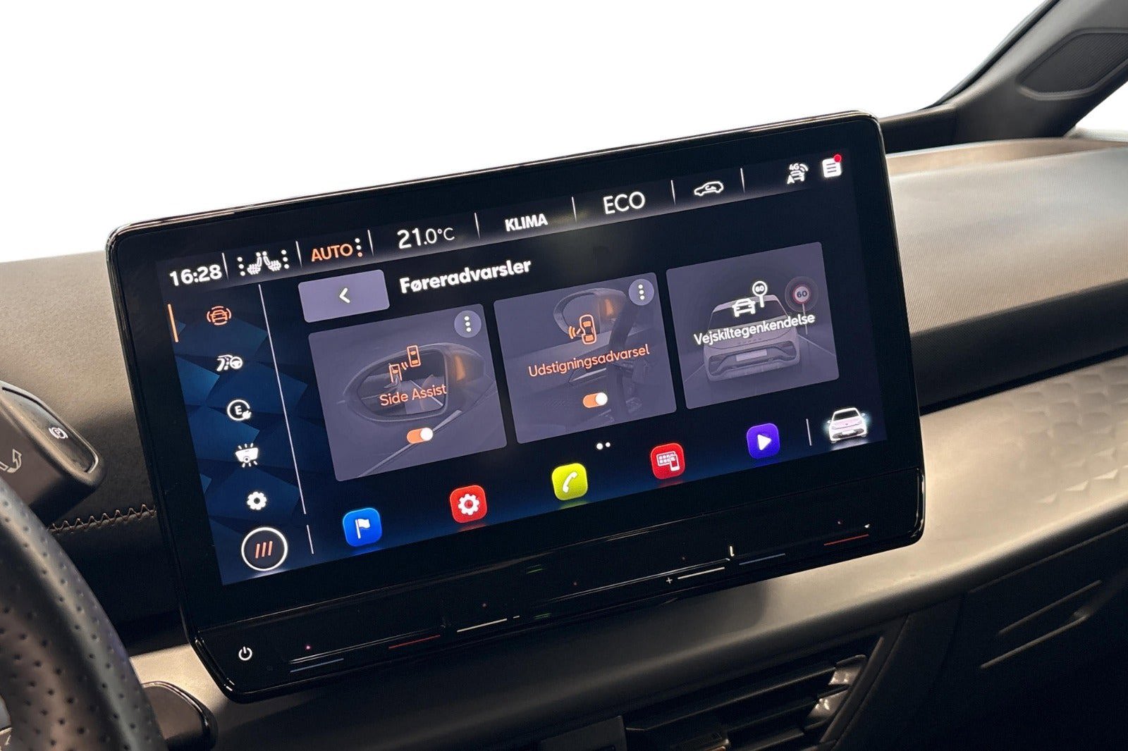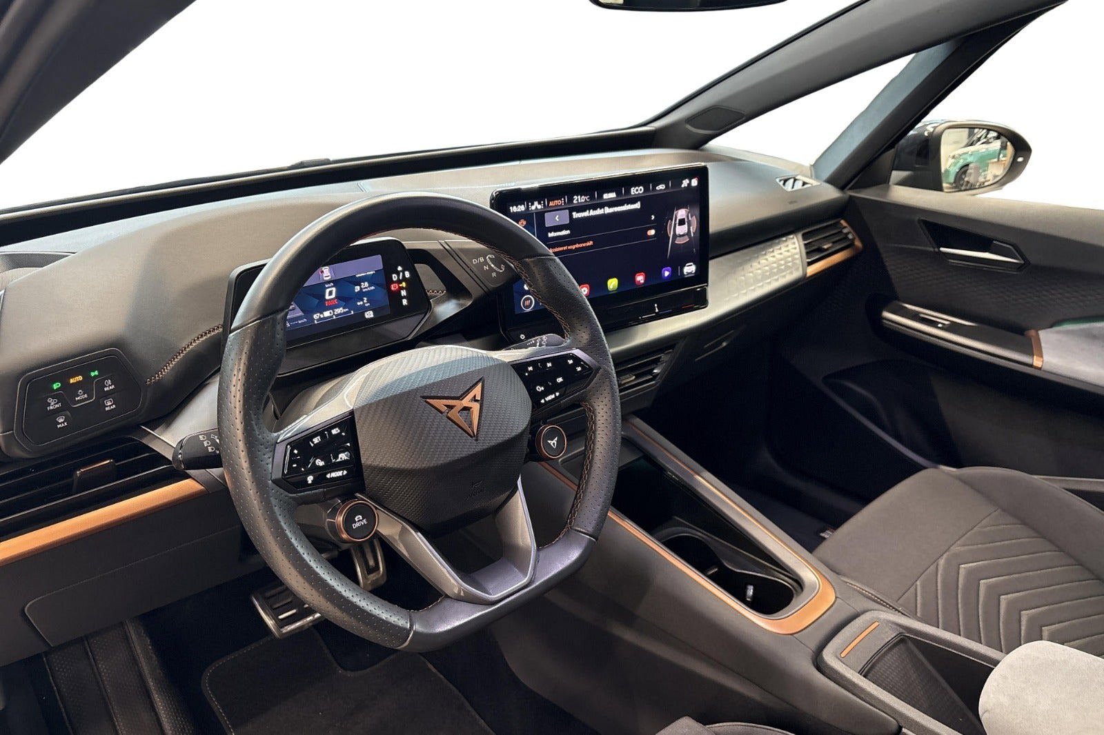 Top View Kamera. 360 graders visning inkl. Navigation samt CUPRA Connect PLUS, Adaptiv fartpilot med Follow-to-Stop, fartbegrænser, Front Assist, der advarer og bremser ved biler, fodgængere og cyklister