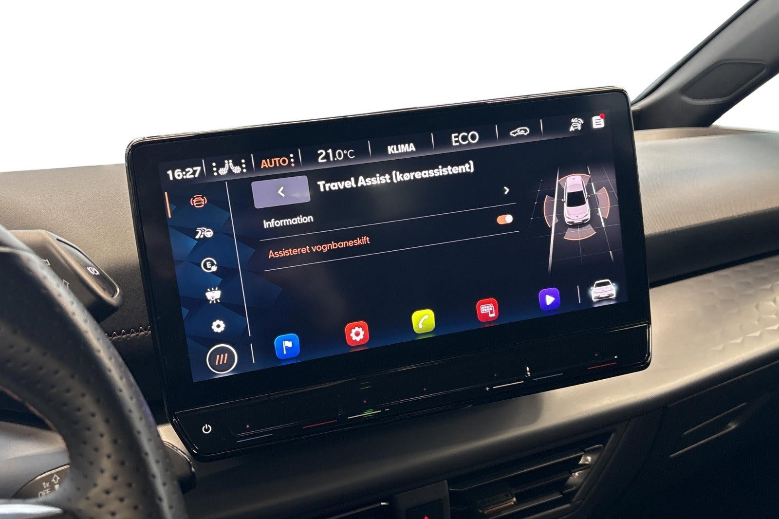 Ekstern, USB-C-datastik og -ladestik Dynamisk styring Supersportsrat, elopvarmet Sædevarme til forsæder med separat regulering Forrude i varmedæmpende glas Med undvigeassistent med drejeassistent Sideruder og bagrude med varmedæmpende glas Nøglefrit låse- og startsystem Keyless Advanced Sikkerhedsbakspejl med automatisk afblænding Sidespejlhuse lakeret Vognbaneassistent samt Emergency Assist og køassistent Sidespejle med elektrisk ind- og udklapning/indstilling og elopvarmning, med sænkn. af sidespejl i passagersiden Navigationssystem, standard med medie- og internetpakke Udkørsels- og vognbaneskiftassistent samt udstigningsadvarsel Parkeringsstyreassistent IPA (Intelligent Park Assist) Fjernlysassistent LED-forlygter LED-baglygter Viskerintervalfunktion med lys-/regnsensor Vejrafhængigt lys, nær- og motorvejslys Komforttelefoni med LTE og trådløs opladning Elopvarmede sprinklerdyser foran Mirror Link og wireless "App"og RSE (forberedelse) Trådløs Apple Carplay samt Android Auto